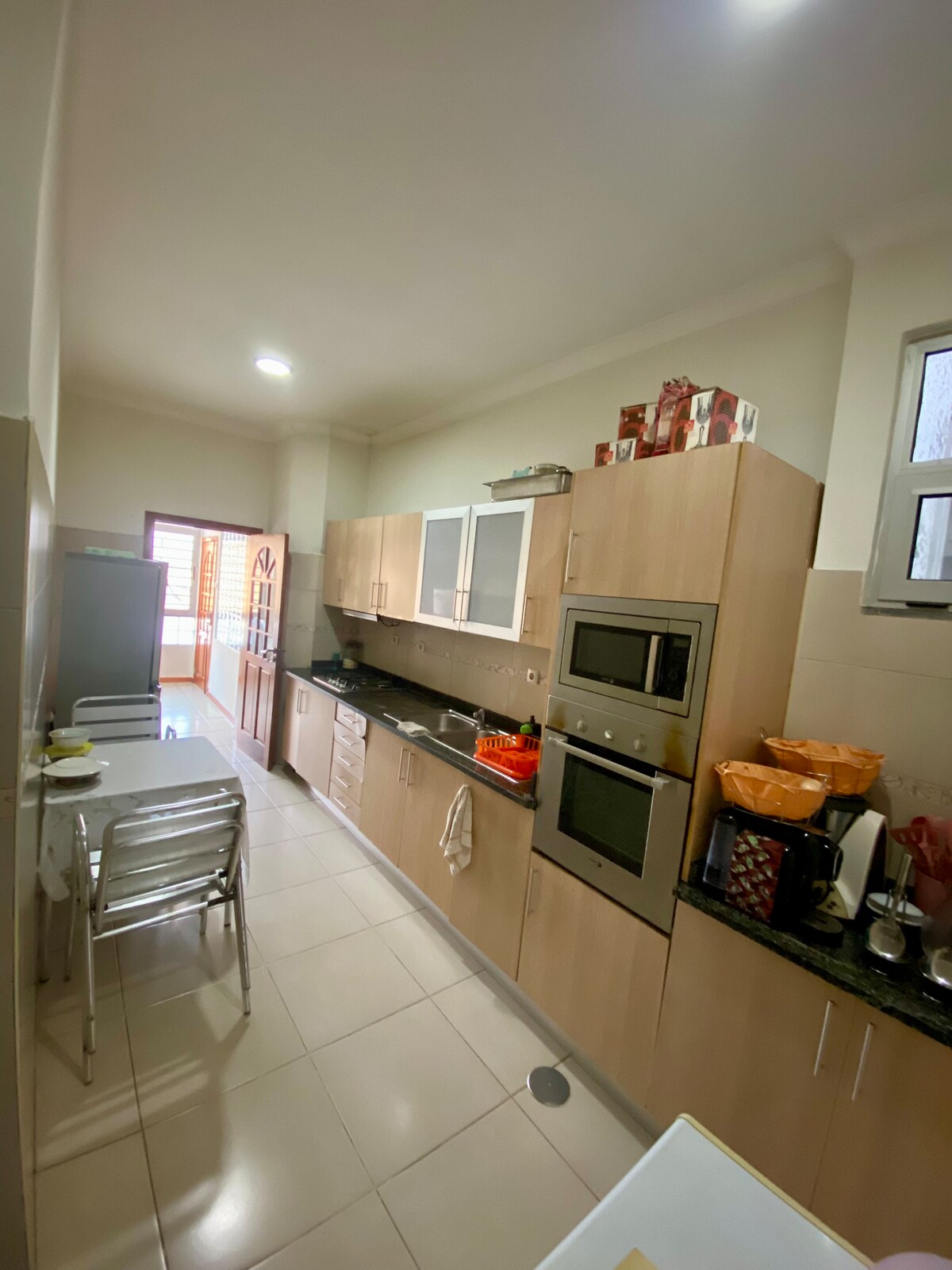 Kamarnya didekorasi dengan apik dan bersih, sehingga menawarkan akomodasi yang diinginkan. Tempat ini memiliki AC, tempat tidur bertingkat untuk dua orang. Ada beberapa handuk yang tersedia untuk Anda gunakan jika Anda mau. Saya sudah berpengalaman menyambut tamu dari berbagai negara dan saya yakin bahwa semua orang diterima di kamar saya. Kamar terletak di depan KFC di Benguela dan di sisi kanan berbatasan dengan Mil Cidades Hotel.