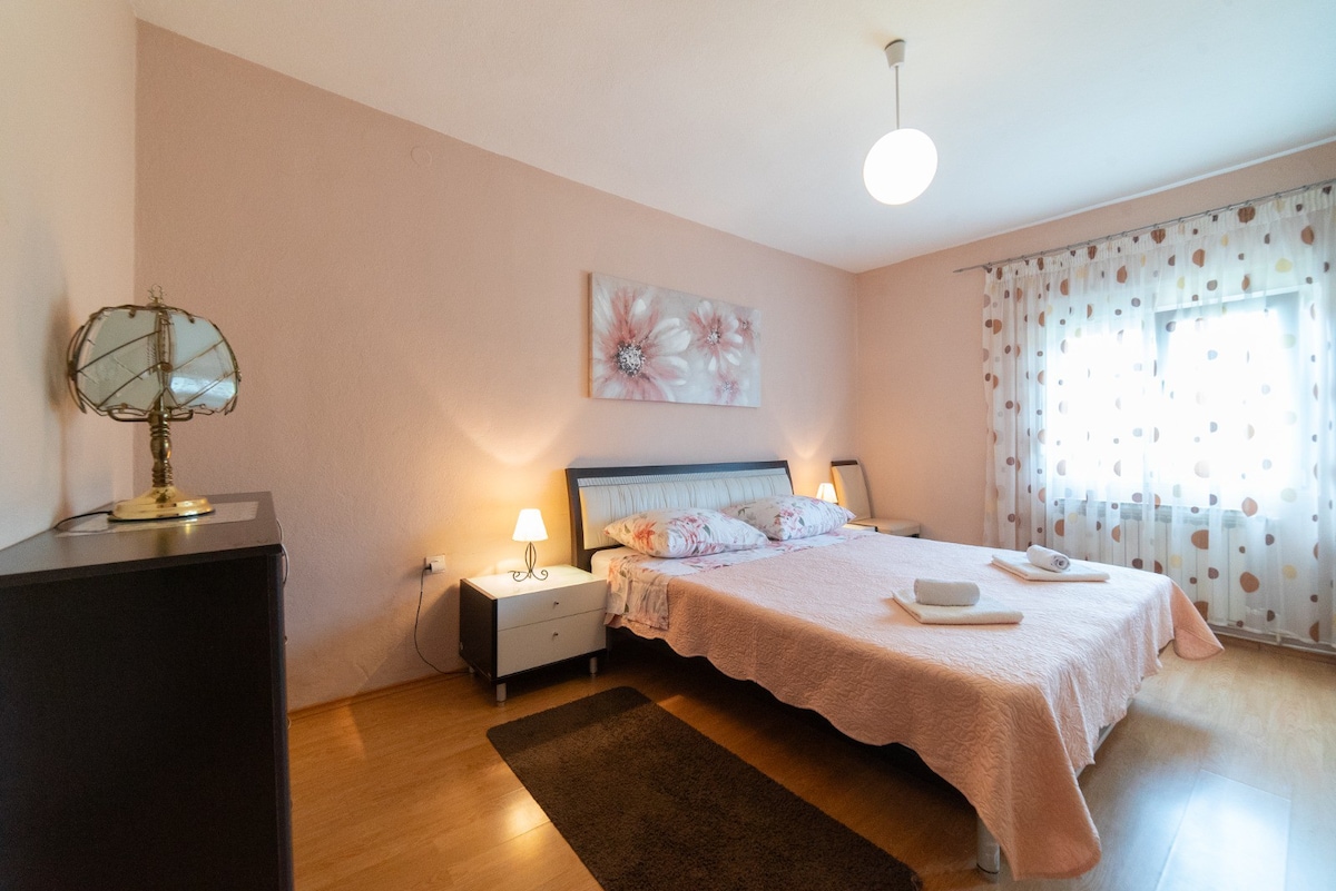 Selamat datang di apartemen kami yang nyaman bernama Nostalgija! Dihiasi dengan indah oleh seseorang dengan semangat dan perhatian terhadap detail, kami mencoba memadukan pesona vintage, ornamen tradisional, dan elemen warisan kami dengan fasilitas bergaya retro modern Apartemen yang baru dilengkapi perabotan ini memiliki halaman dan taman yang luas, parkir gratis, Wi - Fi, dan AC. Tempat ini nyaman menampung 4 tamu + seorang anak (kami bisa menyediakan tempat tidur bayi jika diperlukan ).Kami hanya berjarak 15 -20 menit dari pantai terdekat di daerah ini!