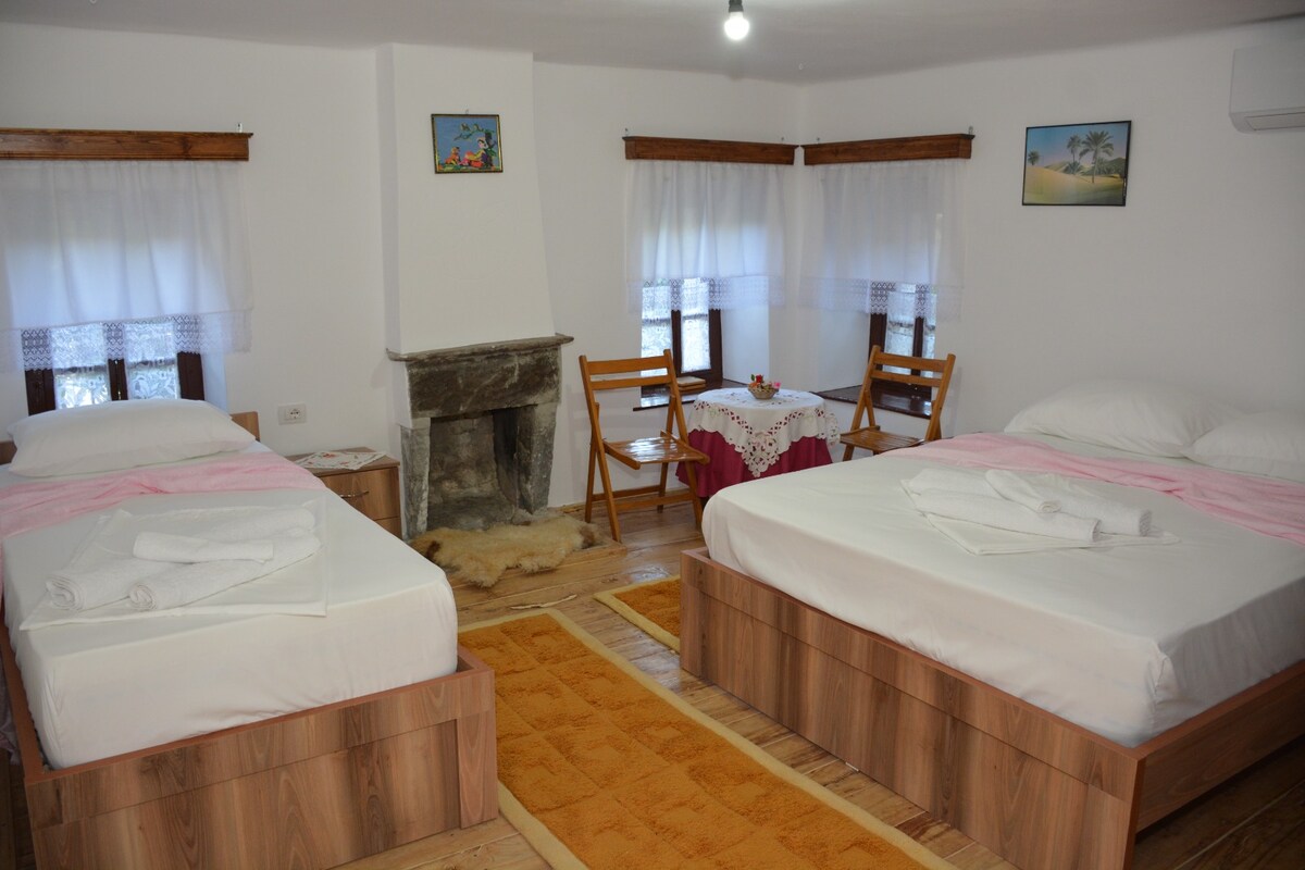 Welcome to our family home, located inside Berat castle, built in the 1870s and filled with character and warmth. Our cozy double room is perfect for guests looking for a comfortable stay, with access to two bathrooms, a spacious kitchen, and a sitting area that can accommodate additional guests. If you wish, you can share a homemade gliko (type of jam) with my grandmother. Outside, there's plenty of space to relax and enjoy a coffee or meal. We can't wait to welcome you!