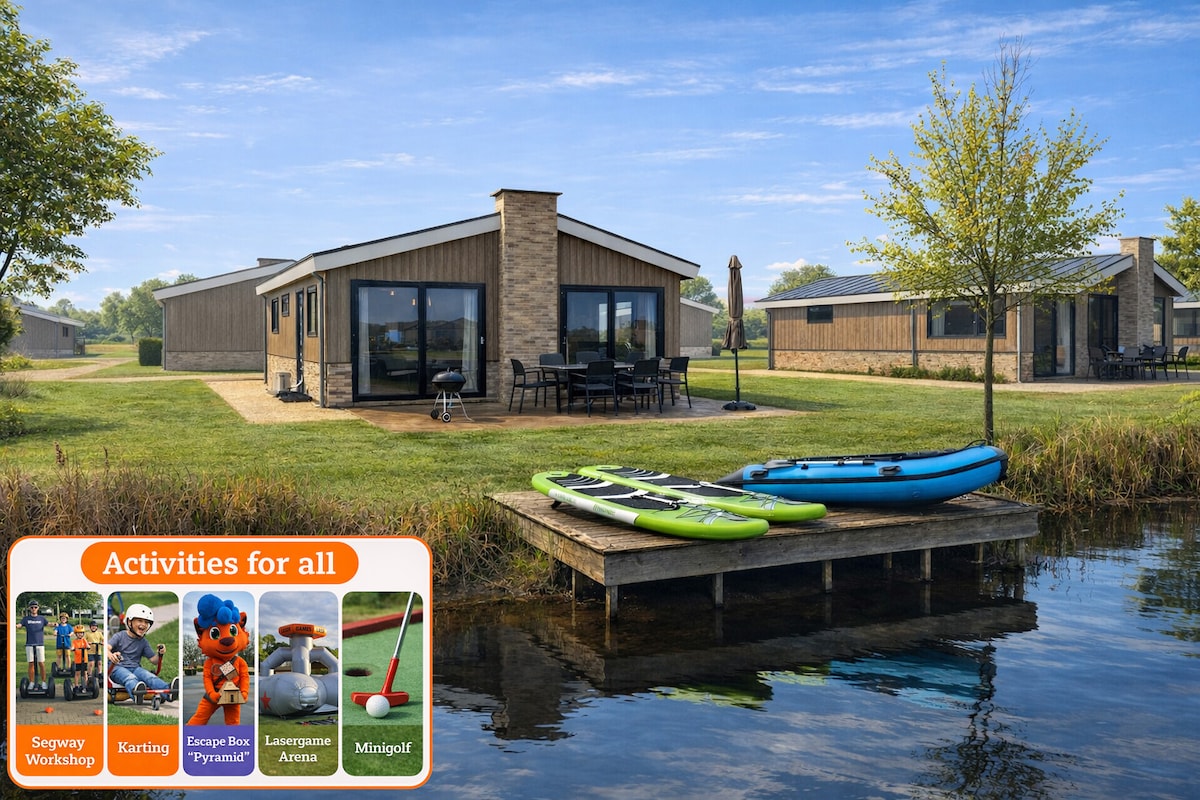 Rasakan relaksasi murni tepat di atas air! WaterVilla Cube de Luxe modern kami terletak di baris pertama di Danau Rhederlaagse – dengan pemandangan fantastis, interior bergaya, 2 kamar tidur masing - masing dengan kamar mandi dalam & teras tertutup yang besar. Cocok untuk pasangan, keluarga, atau teman. Taman ini menawarkan restoran, supermarket, kolam renang luar ruangan, bowling, golf cahaya & hiburan anak - anak – alam & kenyamanan dalam kombinasi ideal!