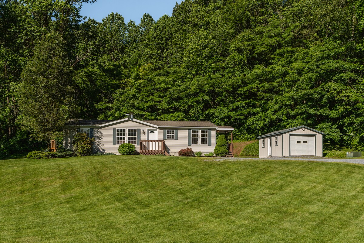 Nikmati liburan ke Kabin Nyaman kami. Ketika Anda datang untuk menikmati tempat kami, Anda akan menemukan penginapan Anda: - 2 kamar tidur ukuran penuh masing - masing menawarkan tempat tidur Queen size. - Dapur lengkap yang diperbarui siap untuk Anda masak atau panggang. - Loteng lantai atas dengan 2 tempat tidur single besar cocok untuk anak - anak kecil. - Coffee/Tea station. - Area ruang tamu dengan TV - Roku TV, Netflix, dan banyak lagi. - Wi - Fi Kecepatan Tinggi yang Handal. - Seprai dan handuk segar. - Mesin cuci/pengering dan kulkas berukuran penuh. Nikmati ketenangan atau PA pedesaan!