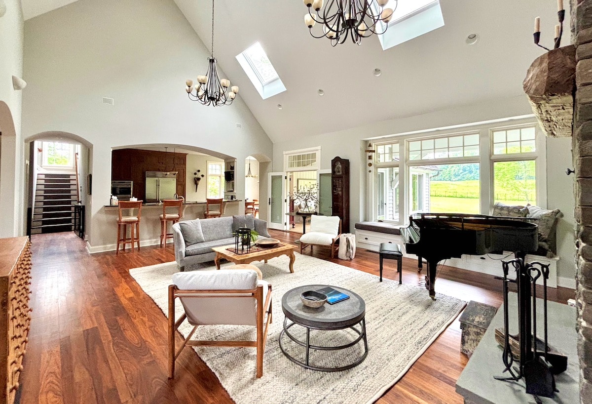 Verona: A new-built, modern contemporary, with attention to every detail. Amenities: 5 Bedrooms ensuite, 4 Full Baths, 2 half-baths. Heated pool (in season), pool house, covered bar, outdoor kitchen w/seating, grill, stone patio surround with seating and umbrellas, 2 fire pits, outdoor shower(!) 3 fireplaces, chef's kitchen, 4 season sunroom, baby grand piano, billiards, home gym, mountain & pastoral views-property is fully fenced w/ gated entry, excellent wifi and 5 smart TVs. Sleeps 12!