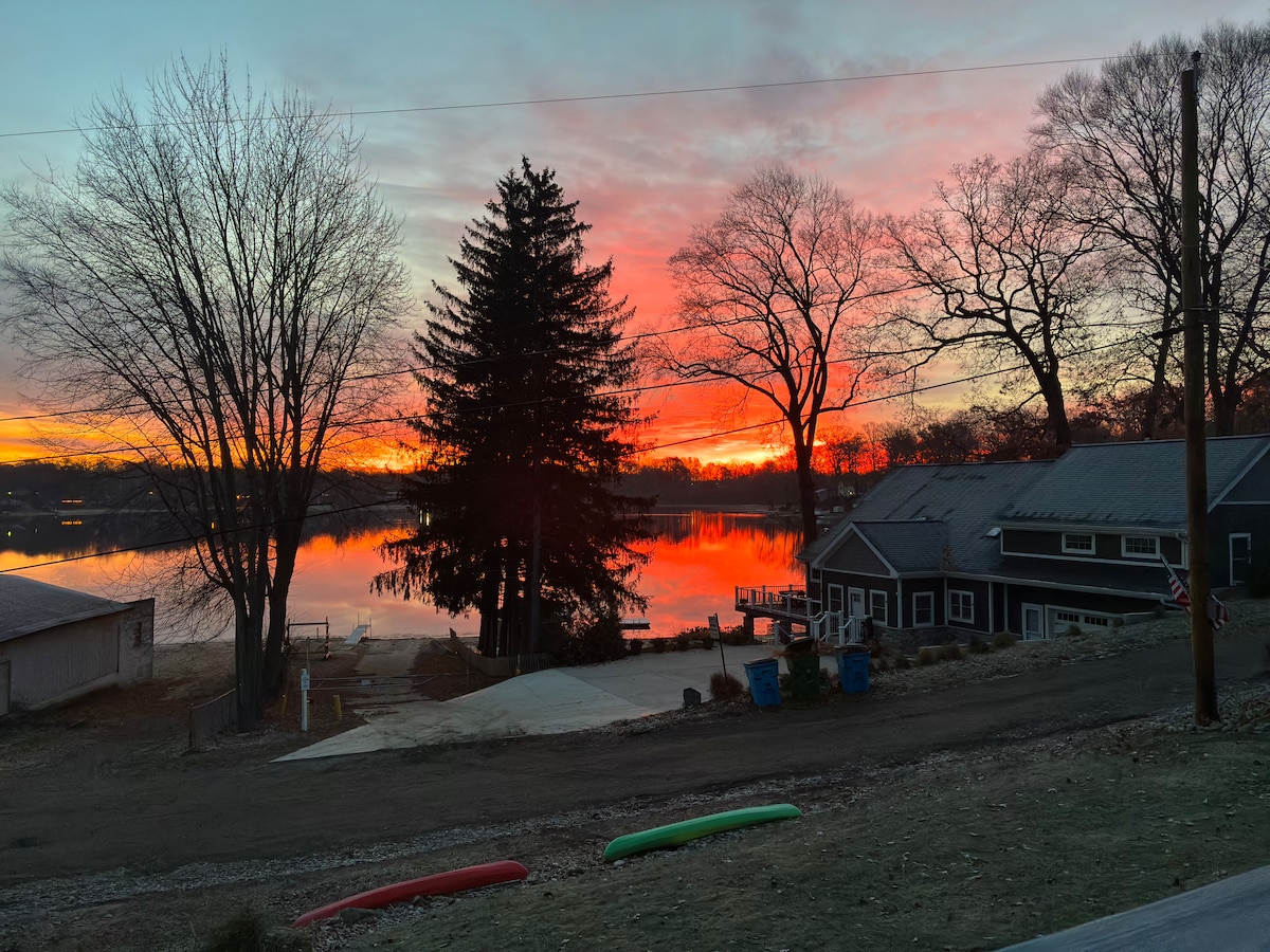 Selamat datang di Riverfront Getaway Anda - 40 menit dari stadion Notre Dame! Terletak di hamparan sungai yang tenang, rumah kami menawarkan perpaduan sempurna antara ketenangan dan aksesibilitas. Baik Anda datang untuk pertandingan Fighting Irish, akhir pekan di perairan, atau sekadar liburan yang damai, Anda akan menyukai apa yang ditawarkan tempat kami! Fasilitas River Life - Dermaga perahu/jet ski pribadi (kayak disediakan). Dek yang tenang untuk kopi pagi atau minuman malam. Firepit dan ruang makan luar ruangan di tepi perairan. Pesan penginapan Anda hari ini!