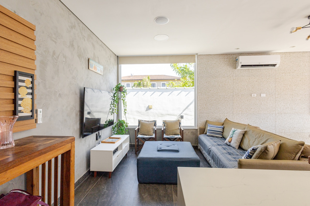 FLAT dengan dapur siaga dan kolam renang ber - AC Dapur dengan: microwave, airfryer, minibar, 3 hearts coffee maker, bangku makan, hairdryer, TV, AC, WI-FI dan penyimpanan harian; Tempat ini mengakomodasi hingga 4 orang dewasa (tempat tidur queen + tempat tidur single + bi - bed) dengan seprai pertama (seprai, handuk mandi, dan bantal). Cobertores, suku cadang ekstra dibebankan saat checkout. Tarif ini TIDAK TERMASUK makanan.