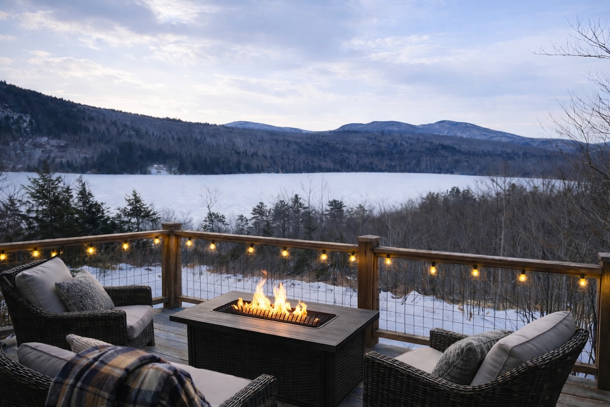 Liburan Ski: Pemandangan Danau & Gunung dengan Bak Mandi Air Panas