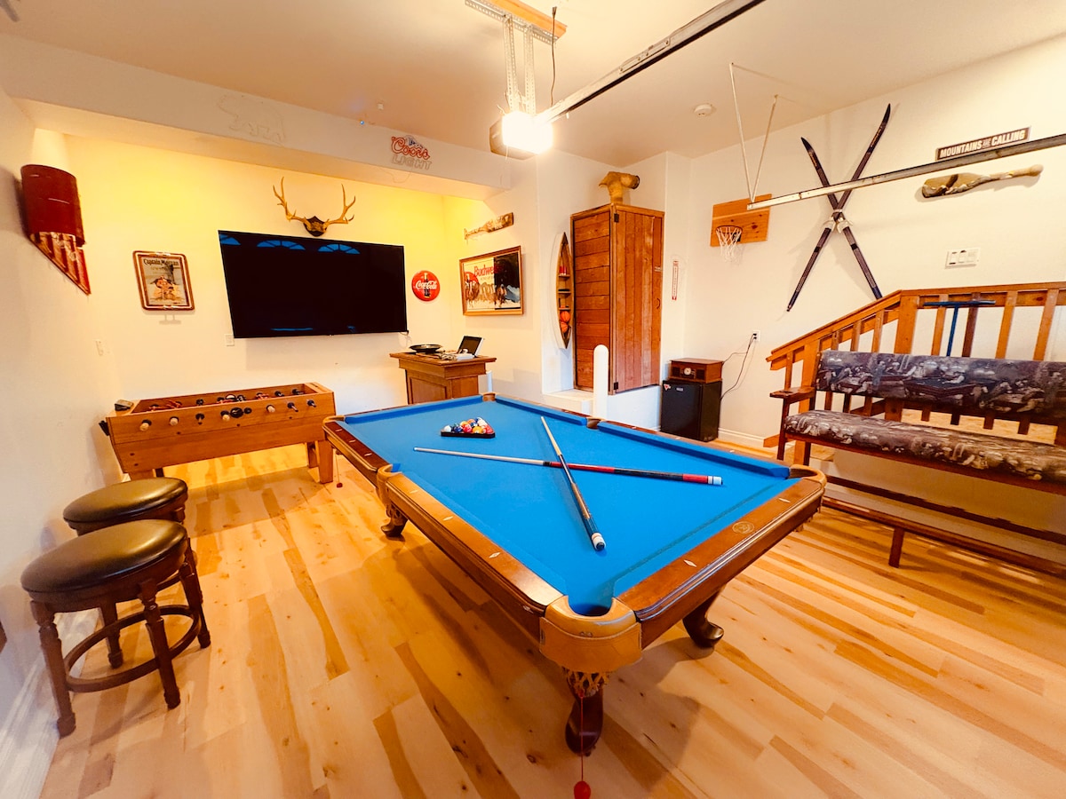 Terletak di MoonRidge, di samping Bear Mountain, Big Bear Zoo baru, lapangan golf, puncak salju, kereta luncur, pusat perbelanjaan, dan banyak lagi. Bawa hingga 16 tamu untuk bersantai dan menikmati lereng, mengadakan pertemuan, atau membawa keluarga berlibur, rumah ini memiliki sesuatu untuk semua orang. Dek belakang raksasa ini memiliki pemandangan "rumah pohon" yang indah, dengan Bear Mountain Ski Resort menjadi pusatnya. Jacuzzi berada di tengah - tengah, dengan pemandangan cahaya bintang yang indah di malam hari. Dapur Chef baru, dan terlalu banyak lagi untuk diiklankan!
