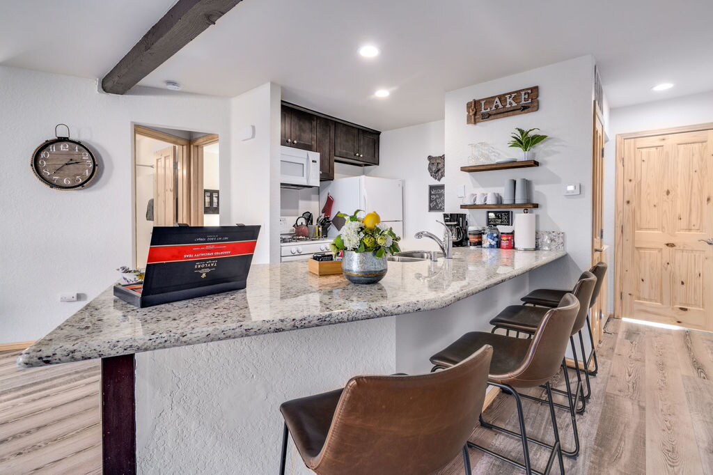 Completely renovated with a unique style and trendy touches, the Casita Condo features Spanish accents throughout the home, with arches and terra-cotta details. Enjoy the brand new kitchen, with all upgraded appliances, including a wine fridge. Gather around the fireplace and Smart TV where you can access all your favorite streaming services. The two bed/two bath layout is ideal for small families or two couples looking to enjoy a mountain getaway.