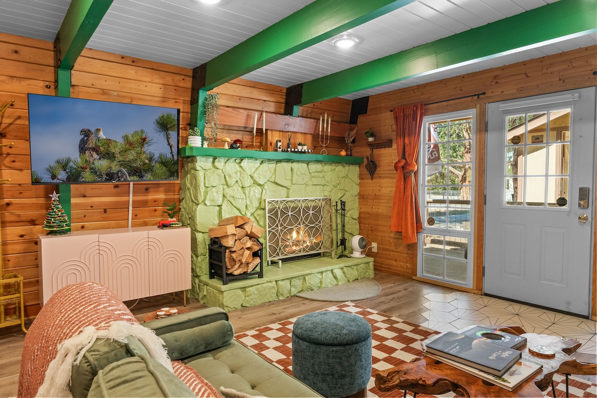 Masuki Juniper Revival, tempat liburan pegunungan bergaya retro di Big Bear, California. Nikmati dua kamar tidur king dengan fasilitas modern, mural yang semarak, lampu neon funky, dan jacuzzi yang menanti di bawah bintang-bintang. Bersantai di dekat perapian kayu dalam ruangan, bersantai di halaman belakang pribadi di tengah hutan San Bernardino, atau nikmati momen tenang di teras atau balkon sambil menyaksikan tupai yang bermain-main. Juniper Revival mengajak Anda untuk bersantai, menikmati keajaiban pegunungan, merasakan nostalgia, dan memulai petualangan.