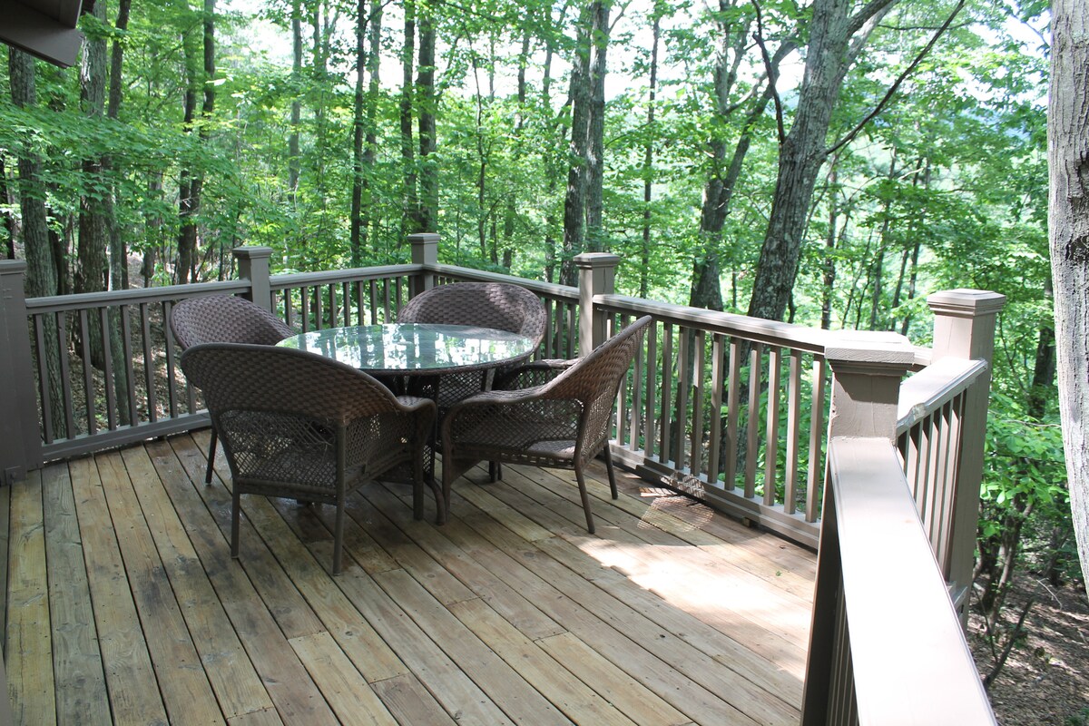 Temukan kenyamanan dan relaksasi di kondominium pegunungan 2 kamar tidur 2 kamar mandi yang nyaman ini. Terletak di Pegunungan Appalachian, Bearfoot Retreat memiliki setiap kenyamanan makhluk yang Anda inginkan untuk membuat masa inap Anda terasa seperti rumah sendiri. Menampilkan perapian kayu bakar, pemandangan danau dan longsoran batu, dengan bar luar ruangan yang menghadap ke hutan - ini adalah tempat peristirahatan yang Anda cari, dengan semua fasilitas modern; bar kopi, smart tv 70 inci, Smart Home, dan banyak lagi.