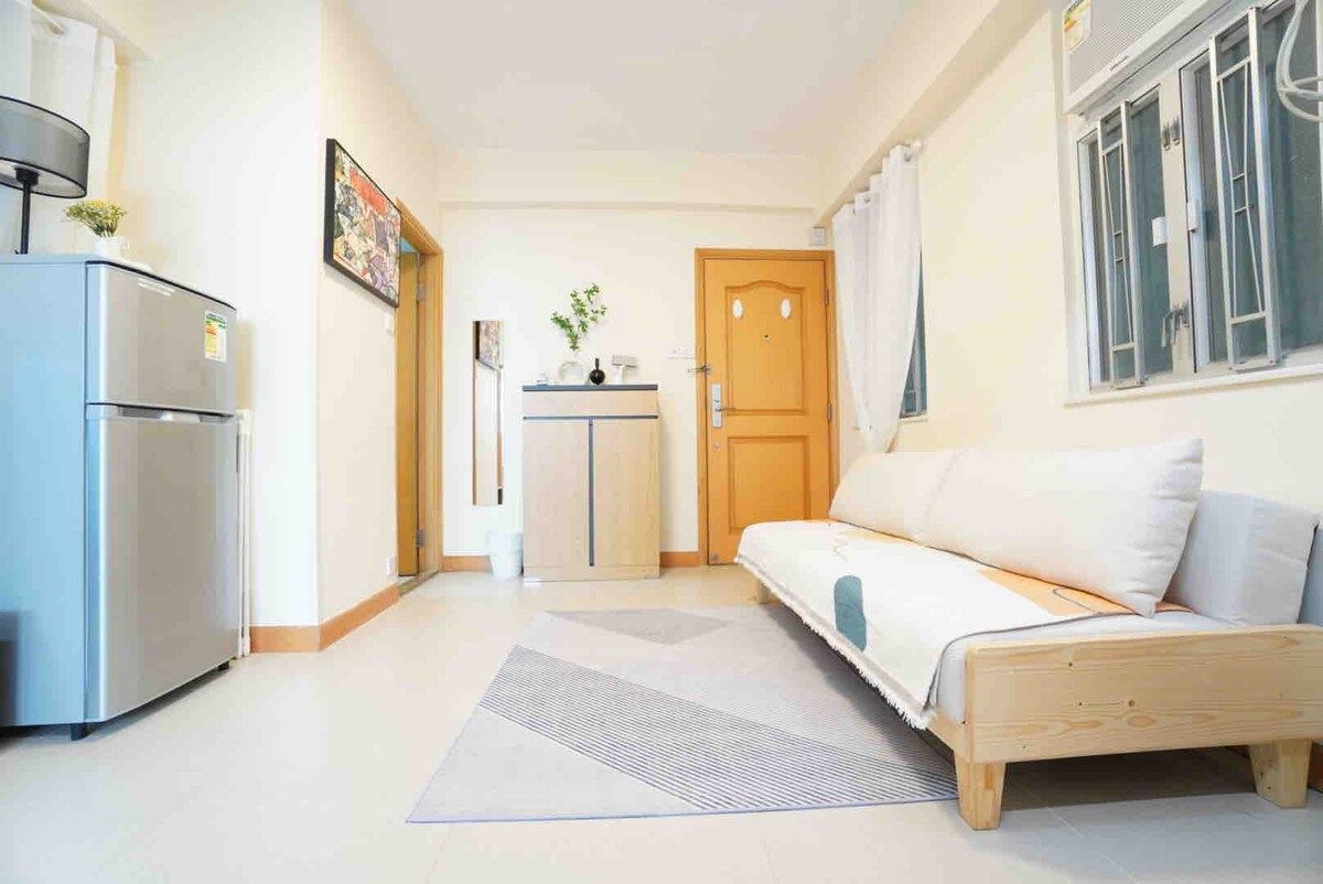 Selamat datang di apartemen 2 kamar tidur saya yang baru direnovasi di dekat stasiun mtr North Point (berjalan kaki 5 -10 menit). Tempat ini terletak di lantai tinggi dengan pemandangan sebagian Pelabuhan Victoria. Tempat ini dilengkapi TV 55 inci yang dilengkapi dengan Google Chromecast, Roku (dengan NETFLIX), WiFi cepat menyala, sofa 4 kursi, 3 unit AC yang terpasang di dinding, pancuran walk - in, dua kasur ganda, kipas angin langit - langit, detektor asap, kompor induksi, mesin cuci, dan microwave.