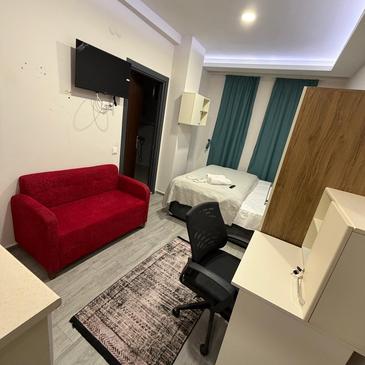 BISNIS KAMI TERLETAK DI JALAN TEPAT SEBERANG DARI PUSAT PERBELANJAAN ESPARK. Fasilitas kamar: Apartemen kami menawarkan area akomodasi yang luas dan nyaman dengan desain modern. Tempat tidur double nyaman kami, seprai dan handuk berkualitas (ortopedi) disiapkan dengan cermat untuk tamu kami. Kamar ini juga memiliki lemari baru dan berguna serta kursi bersayap yang nyaman. Berkat koneksi internet di TV, Anda dapat mengakses aplikasi seperti Netflix, YouTube, dan menonton konten apa pun yang Anda inginkan.