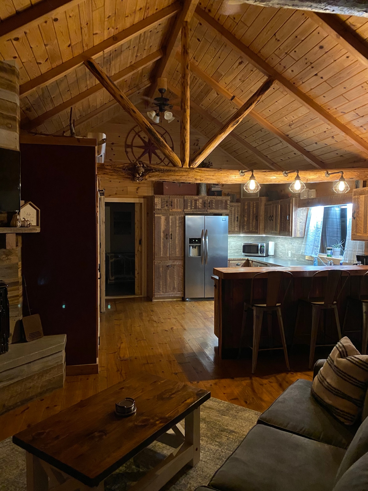 Kabin pedesaan yang indah dengan semua sentuhan modern dan peralatan rumah. Nikmati dapur berperabot lengkap untuk semua kebutuhan memasak Anda. Dua ubin berjalan di kamar mandi dengan master memiliki kepala hujan yang mewah. Nyaman di samping kompor pelet dengan buku dan segelas anggur atau di teras depan dan saksikan matahari terbenam Hagerman yang menakjubkan. Duduklah di sekitar api unggun di halaman belakang pribadi dan tatap semua bintang di malam hari. Anda akan membuat kabin terasa santai dan benar - benar segar!