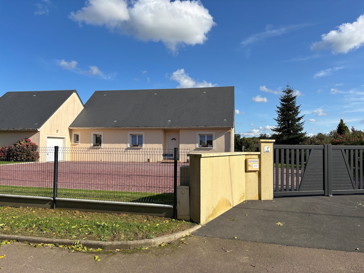 Rumah baru yang indah, cerah, dan luas, terletak 6 km dari Bayeux dan 13 km dari Pantai Omaha (pantai St Laurent dan pemakaman Amerika) Vila yang lengkap ini, didekorasi dengan suasana hangat dan elegan, menjamin masa inap yang sukses bersama teman atau keluarga. Taman tertutup besar dengan teras, furnitur taman. Beberapa tempat parkir pribadi di properti Tempat tidur yang dibuat saat kedatangan, handuk dan seprai rumah tangga disediakan. Tempat tidur bayi untuk bepergian sesuai permintaan.