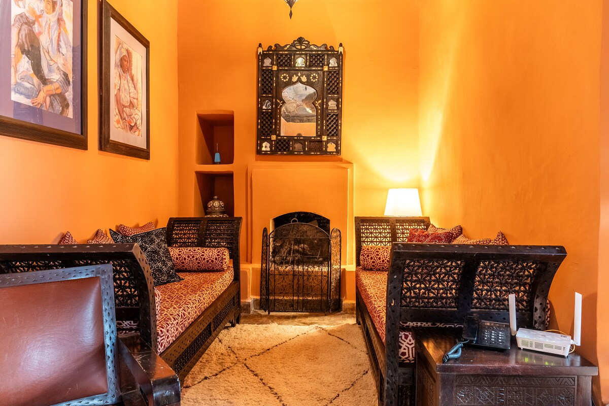 Dar Nurah adalah riad bergaya yang bisa menampung hingga 6 tamu, sangat nyaman untuk keluarga, teman, atau pasangan dengan maksimal 4 orang. Rumah selalu disewakan secara keseluruhan, jadi Anda akan menikmati seluruh riad untuk Anda sendiri dan tidak ada tamu lain yang akan hadir. Luas ruang keluarga sekitar 180 meter persegi. Ada 2 kamar tidur berperabot indah dengan kamar mandi dalam, ruang tamu dengan sofa bed, dan banyak area tamu terbuka. Di teras atap, Anda akan menemukan area makan untuk 4–6 orang.