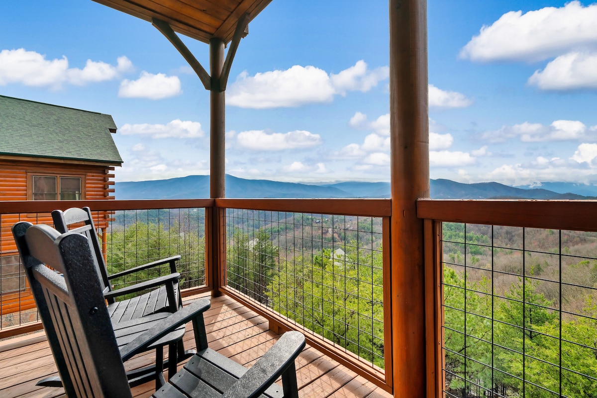 ⛰Smoky Mountain Top View🌲King Suite🌲True Log Cabin🌲Fire Pit🌲3 Level Deck 🌲Hot Tub🌲Pool Table🌲Secluded⛰