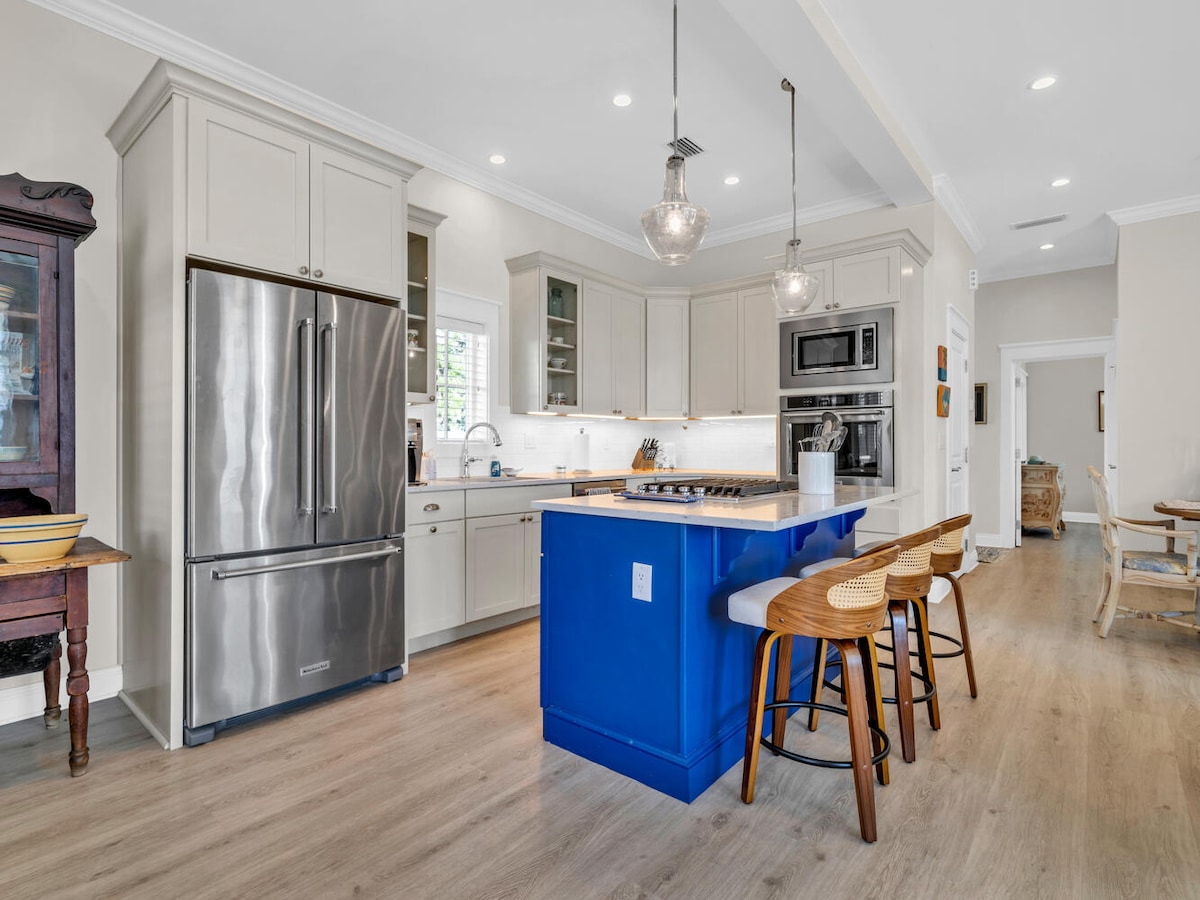 LANGKAH KE PANTAI! Rumah MENAKJUBKAN ini berada TEPAT di seberang akses Blue Mountain Beach, salah satu akses yang paling didambakan di 30A! Nikmati pemandangan teluk yang luas dari SEMUA kamar tidur, KOLAM RENANG PRIBADI, TERMASUK LSV 6 kursi, 4 beranda, dapur makan koki gourmet dengan meja kuarsa + kulkas Sub-Zero, tata letak konsep terbuka, pancuran luar ruangan, bar basah dengan kulkas anggur, BEBERAPA area tamu dan makan, dan kamar mandi dalam untuk semua kamar tidur + DUA kamar tidur king (master)!