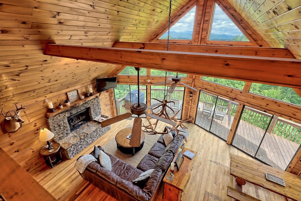 Liburan Anda di Blue Ridge Mountain View menanti! Nikmati pemandangan pegunungan 50 mil yang menakjubkan dan berlapis dari kabin kayu yang sempurna ini. Dirancang untuk bersantai dan romantis, dengan beberapa dek luar ruangan, bak mandi air panas pribadi, perapian dalam dan luar ruangan yang nyaman, lubang api, dan meja biliar. Sangat cocok untuk acara khusus atau pasangan yang menampilkan dua suite King yang terpisah untuk privasi. Diperbarui dan dilengkapi dengan perlengkapan dasar, tempat ini memadukan pesona pedesaan dengan kenyamanan modern; terletak tepat di antara Blue Ridge dan Ellijay.