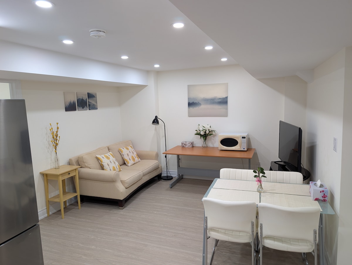 Renovated studio basement apartment sep entrance private Quick walking distance to warden subway , ride 20 min to downtown. bus stop is 10 sec walk - travel to go train east is 5 min . 2 stops to union station downtown Beaches boardwalk 15 min travel time Free laundry in unit including laundry soap if needed .high speed wifi , Roku tv with basic cable included, fire escape plan is drawn and printed in guest unit with 2 fire escape routes And most off all free parking available in driveway