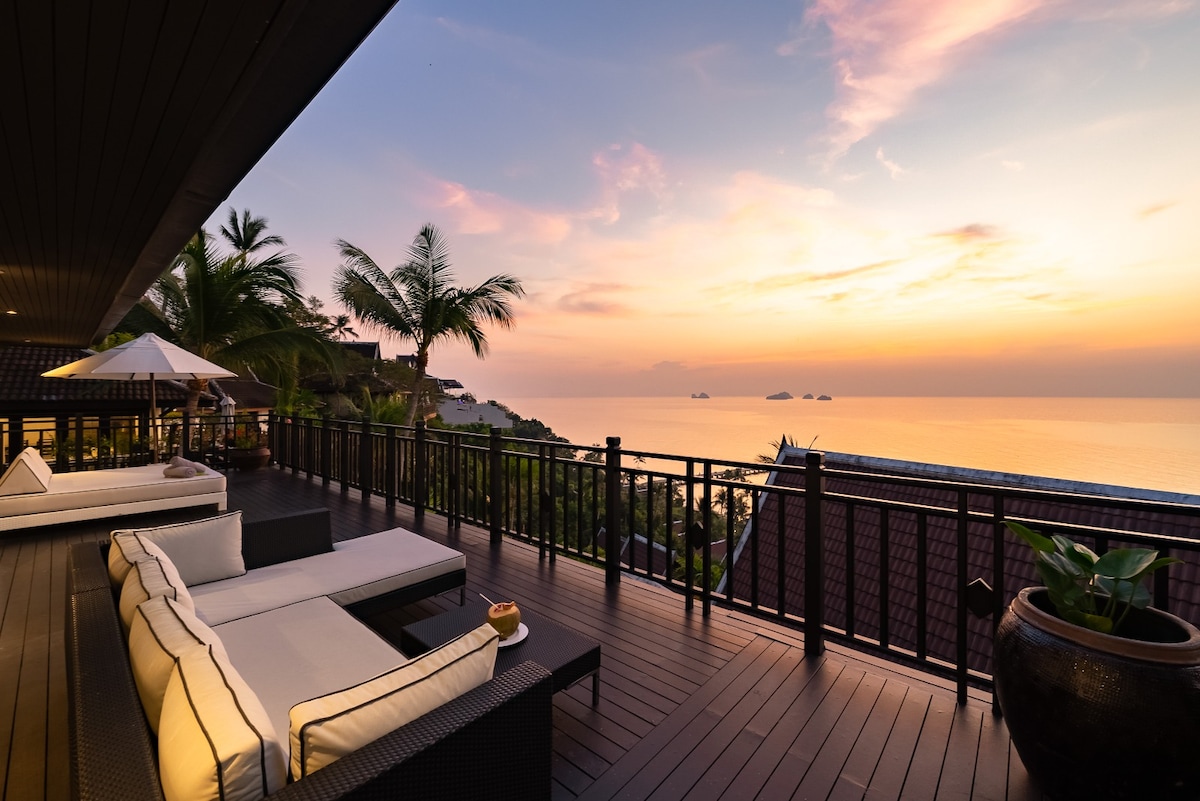 Teras pemandangan laut 2 menit dari pantai Chaweng