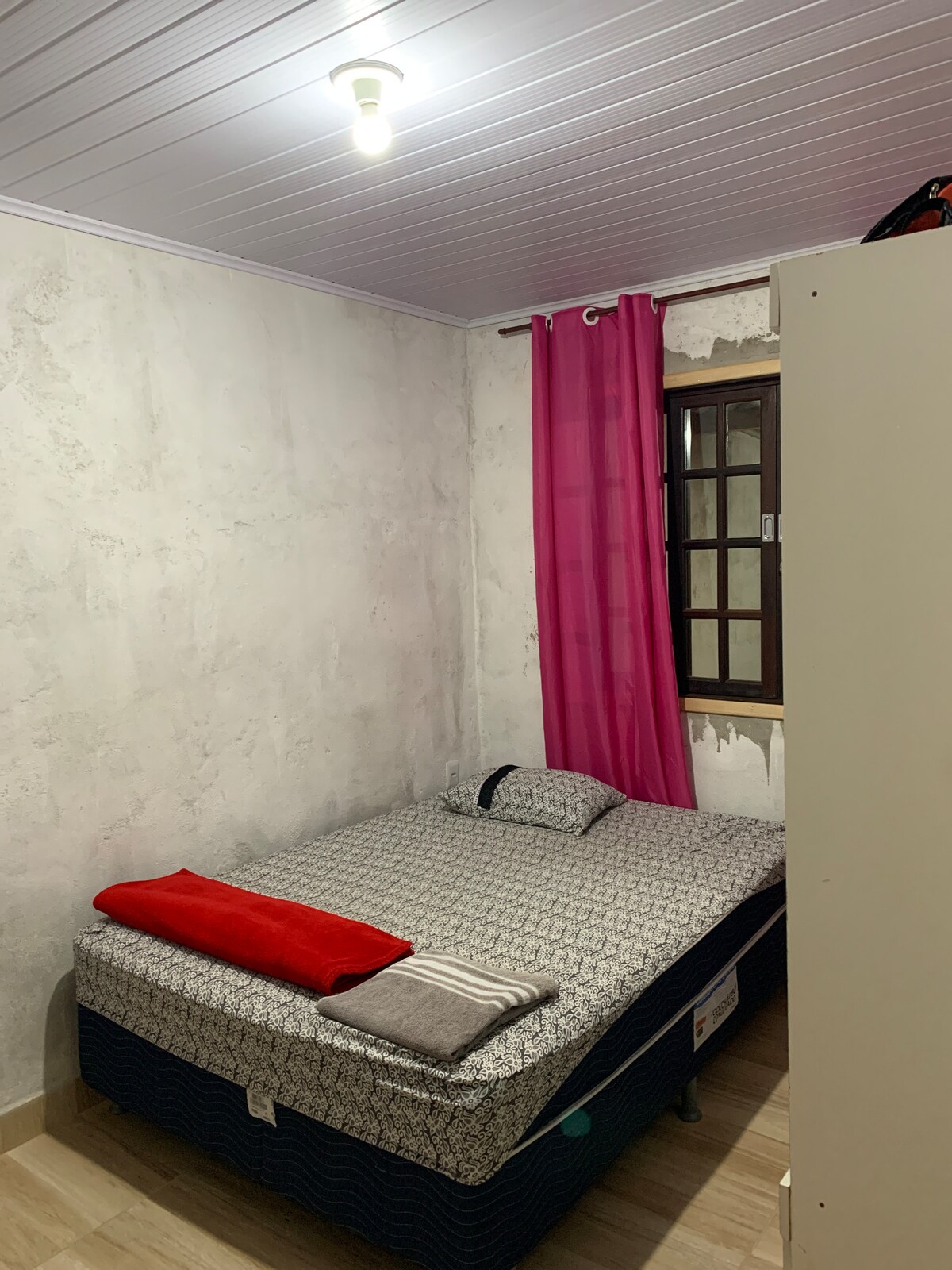 Localização excelente. Dois minutos andando de padaria, supermercado e beira do lago. Simples, mas muito aconchegante. - um quarto com cama de casal e guarda roupas, um colchão de solteiro e um colchão de casal inflável - sala e cozinha conjugadas com um sofá cama, fogão e geladeira. - banheiro com ótimo chuveiro .