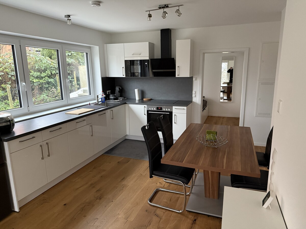 Komplette, moderne, stilvolle 48m² 1-Zimmer-Wohnung mit Arbeitsplatz. Wohn-/Schlafbereich mit modernem, bequemen Schlafsofa mit 1,40x2,00 m Schlaffläche plus extra Topper für bequemes Schlafen. Zentrale Lage in sehr ruhiger Nebenstraße. Wohnküche mit Herd, Backofen, Mikrowelle, Kaffeemaschine, Wasserkocher, Kühlschrank und wunderschönem Massivholz-Hochtisch mit zwei Hockern. Großzügiges Bad mit extra großer Dusche, Waschbecken, WC. Ausgestattet mit Fön. Bei Extra-Wünschen gerne fragen.