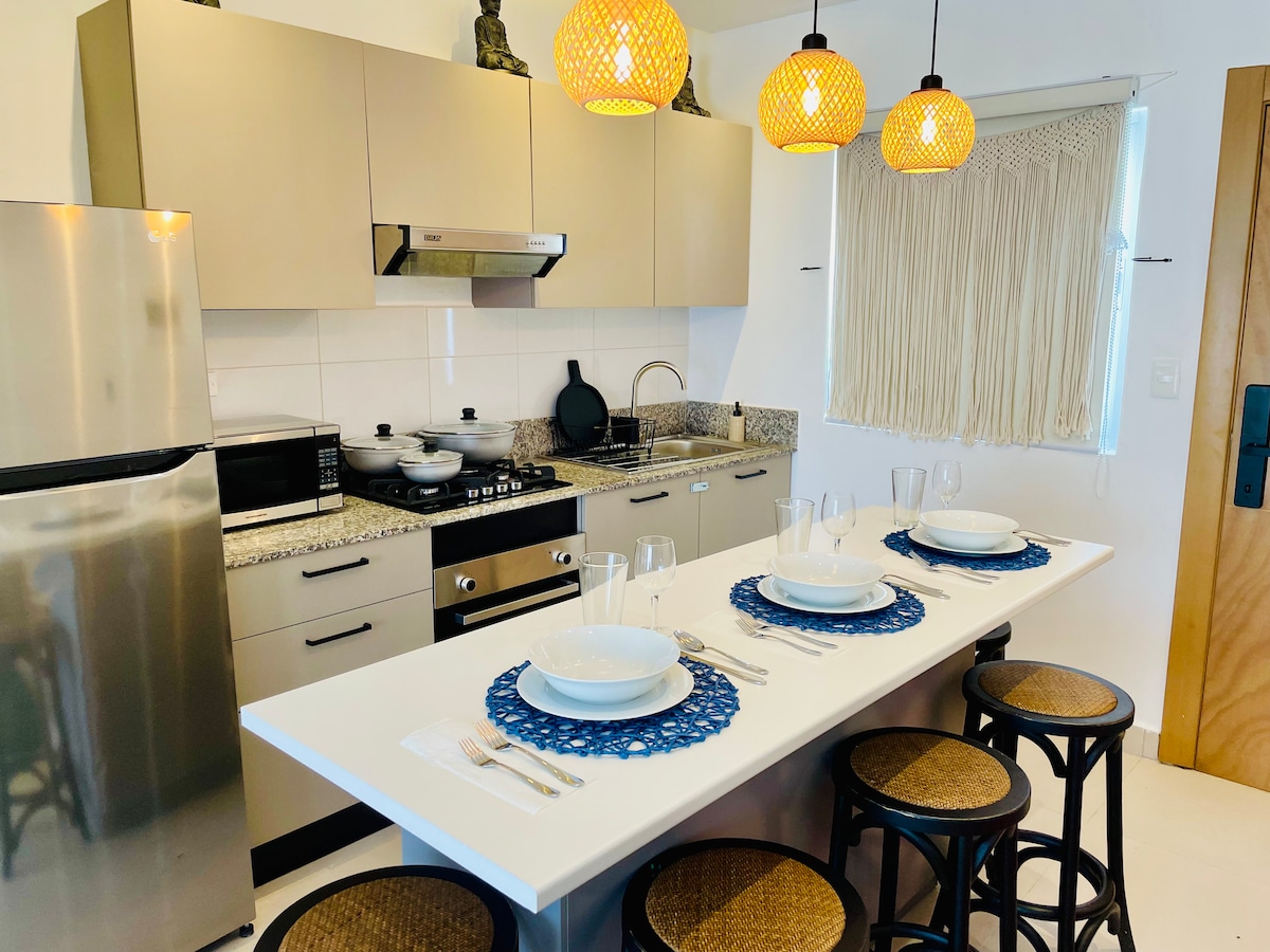 Selamat datang di PrimeSuites, tempat Anda yang modern, pribadi, dan lengkap di Boca Chica, ideal untuk wisatawan yang sering bepergian, keluarga, atau pasangan yang mencari kenyamanan, ketenangan, dan lokasi yang strategis. Nikmati: Wi - 📶 Fi cepat ❄️ AC di semua area Parkir 🚗 gratis. 🔐 Keamanan 24 jam. 🔑 Check - in mandiri dengan Smart Lock 🍳 Dapur berfasilitas lengkap 📺 Kamar yang nyaman dengan Smart TV/Netflix 🚿 Air panas terjamin 👔 Setrika dan pengering rambut 🏠 Apartemen pribadi 100%.