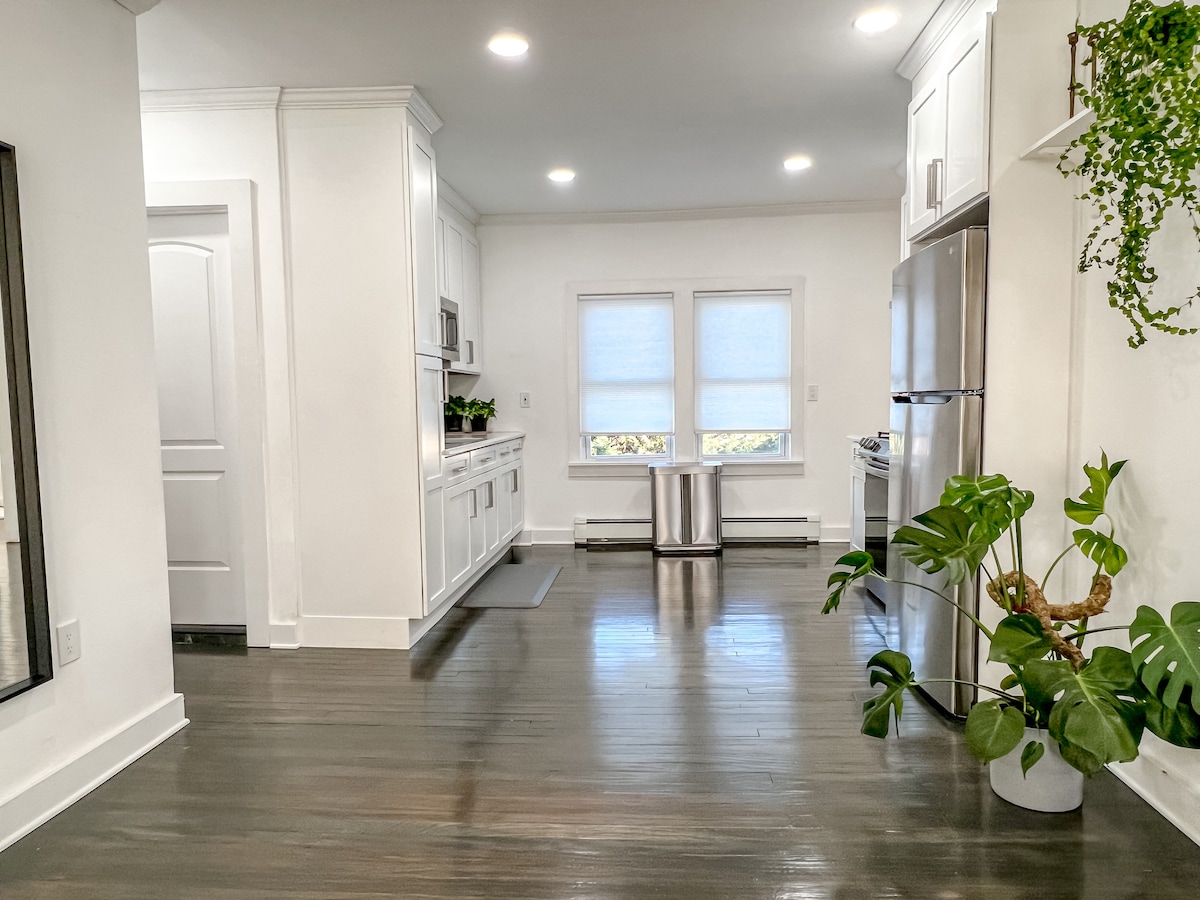 Pesan apartemen modern satu kamar tidur yang baru direnovasi ini. 1 tempat tidur dengan tempat tidur Queen, TV & meja rias. Tempat tidur futon ekstra yang dapat dikonversi. Tempat tidur lipat twin ekstra. Ruang tamu besar dengan sofa bergaya, meja kopi marmer & 2 kursi. Meja makan bergaya. Dapur baru dengan backsplash marmer, lantai porselen & peralatan stainless steel. Kamar mandi baru modern dengan ubin marmer & lantai porselen. Lantai kayu di ruang tamu & ruang makan rm & bedrm. Free parking 1 car. Lingkungan tinggal berjajar pohon yang aman. 1/2 jam berkendara atau bus ke Times Square NYC.