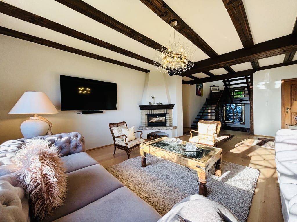 In dieser geräumigen und besonderen Unterkunft wird sich die ganze Gruppe wohl fühlen. Ihr Parkplatz befindet sich direkt vor dem Haus. Sie bewohnen das Erdgeschoß des 2-Familien-Hauses. Es erwartet sie eine gut ausgestattete, etwas ins Alter gekommene Küche. Bad und WC sind getrennt. Zwei Doppelzimmer, ein Einzelzimmer und ein gemütliches Wohnzimmer stehen zur Verfügung. Im Garten gibt es lauschige Plätzchen, wo man den Sonnenuntergang und die herrliche Aussicht genießen kann.