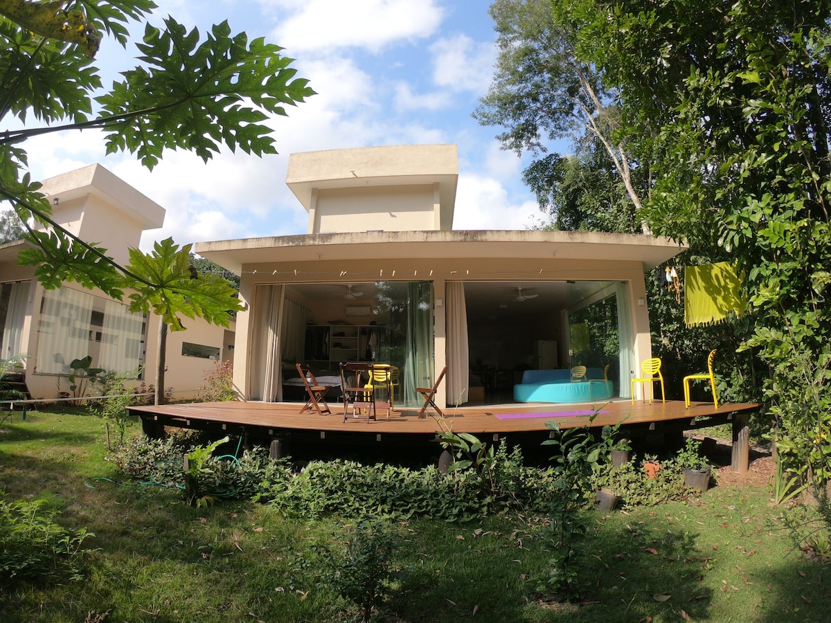 @CasasFlambo Bangunlah dengan nyanyian burung dan kesegaran Hutan Atlantik. Bungalo bergaya studio kami kecil, menawan, dan berperabot lengkap untuk masa inap yang nyaman untuk hingga 4 tamu. Ada barbeku pribadi, hammock di balkon dan wi-fi. Ideal untuk pasangan, keluarga kecil, atau mereka yang mencari istirahat dan kontak dengan alam. 🌴 Terletak di jalan yang tenang, aman, tidak ada jalan keluar, dan 15 menit dari laut. 🐾 Ramah hewan peliharaan Check-in dan check-out fleksibel 🕒 sesuai ketersediaan