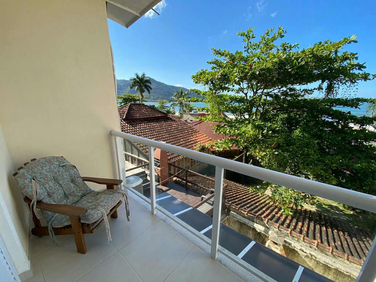 Apartemen menawan yang berisi suite, kamar mandi sosial, menampung 2 orang, ruang tamu, dapur bergaya Amerika, balkon dengan barbeku, TV pintar Vivo, kipas angin langit-langit, Wi-Fi, AC di kamar tidur dan ruang tamu, 1 blok dari pantai, dekat dengan kawasan komersial Maresias, Anda bisa melakukan segalanya dengan berjalan kaki. Tempat yang tenang dan aman.