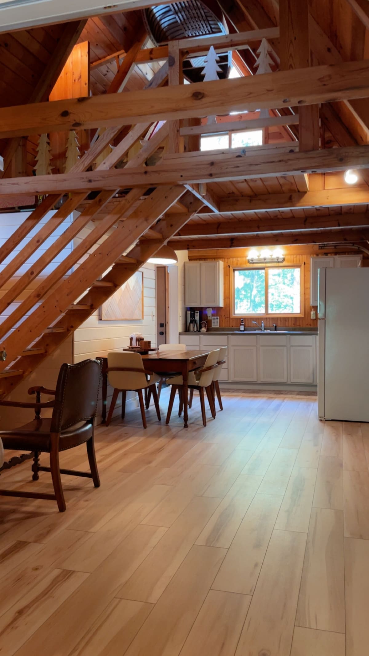 Modern, rustic, Aframe cabin on 10 wooded acres; beautiful, simple décor, fully equipped kitchen, all appliances, glass stove top, airfryer oven, filtered H2O/ice maker. Enjoy a luxurious bathroom, with a heated tile floor, walk-in shower. Towels, shampoo/conditioner/bodywash are provided. King bed in loft and NEW king gel memory foam bed on main floor. Smart TV, wifi. Books, games Woodstove heats the cabin perfectly in the colder months. All wood provided. There is a minisplit heat/ac unit.