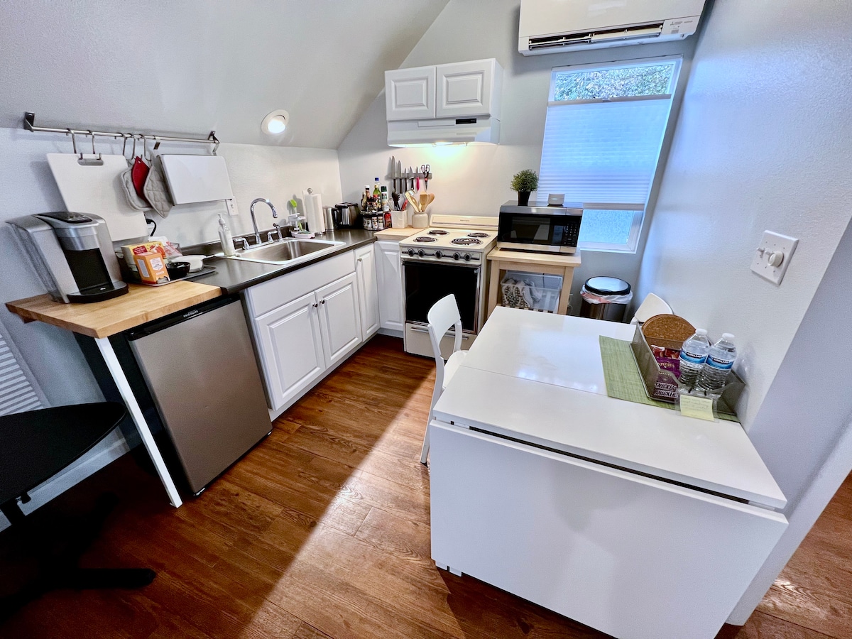 Bersih, nyaman, dan ramah dompet, studio sederhana ini berada di rumah yang telah diubah secara historis di dekat St. Luke's, BSU, Greenbelt, dan pusat kota Boise. Tempat ini tidak mewah, namun memiliki apa yang Anda butuhkan: tempat tidur nyaman, dapur kecil, kamar mandi, dan tempat untuk beristirahat di antara giliran kerja, kelas, atau menjelajah. Lokasi melakukan pekerjaan berat, bukan finishing. Jika Anda menginginkan yang ramping dan mewah, lewati saja—jika Anda menginginkan nilai dan akses, tempat ini memenuhi. Lihat "detail lainnya" untuk catatan tentang parkir.