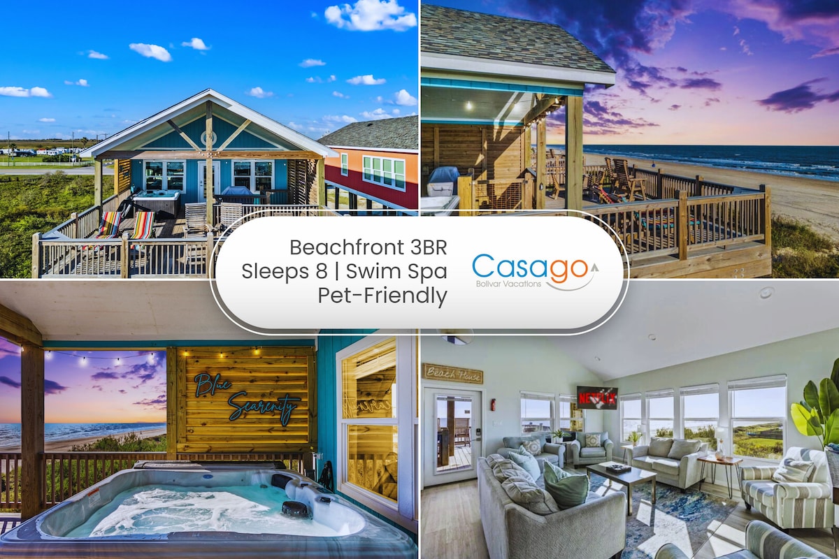 Beaches & Dreams Beach House, Crystal Beach (Dekat Galveston) ~ 7 orang KOLAM RENANG */BAK AIR PANAS ~ Dapat menampung 14 orang ~ 5 menit berjalan kaki ke pantai atau berkendara untuk parkir langsung di atas pasir ~ Kembang api/Api unggun OK @ the Beach** ~ Kesenangan Halaman Belakang: MEMANCING DI KANAL + Bar Tiki + TV + Pemanggang Arang ~ 2 balkon untuk menikmati pemandangan matahari terbit & angin laut (pemandangan laut terhalang) ~Komunitas tertutup. Keselamatan adalah prioritas kami. *Plunge Pool Ambient/Min Temp = 75F **Periksa situs web Galveston County untuk batasan/larangan