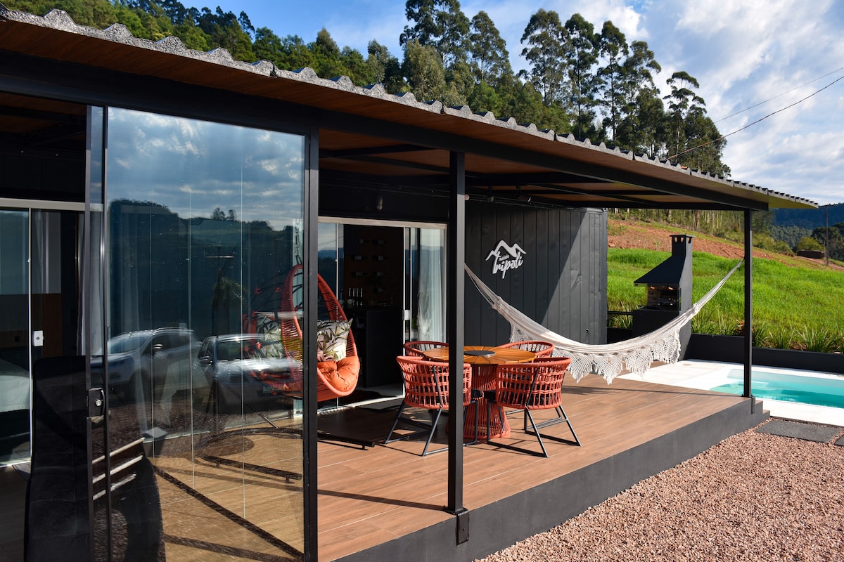 Kabin yang nyaman dan ideal bagi mereka yang menginginkan kedamaian dan ketenangan serta kontak dengan alam, namun tanpa kehilangan kenyamanan. Tempat ini menyatukan pedesaan dengan yang canggih, dengan furnitur unik yang terbuat dari kayu selama konstruksi, namun juga dengan bak mandi air panas dan pancuran gas, tempat tidur queen, AC, Wi - Fi, dan dapur. Akomodasi mewah di tengah alam. Lokasinya berada di puncak Morro ZĐhut, di kawasan Year Bom, di Colinas, RS. Dari dek Anda akan menikmati pemandangan lembah yang menakjubkan dan menikmati matahari terbenam.