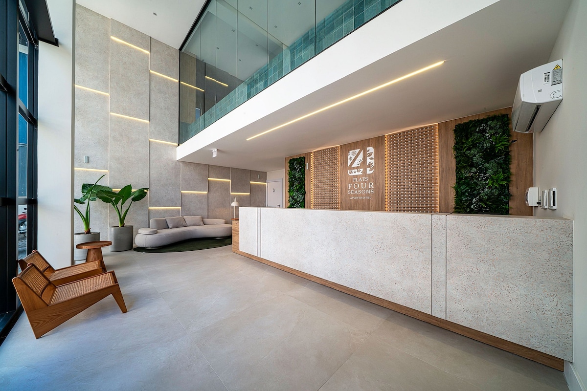 Kami menawarkan kamar en-suite di Four Seasons Residence, tempat bergaya yang dekat dengan segala yang Anda butuhkan. Suite ini berhak menggunakan kolam renang teras dengan pemandangan laut Bombinhas yang luar biasa, dengan tepi infinity. Di area rekreasi, terdapat kolam renang hangat dengan jacuzzi bawaan. Selain itu, tempat ini memiliki layanan cuci pakaian komunitas OMO berbayar, dan tempat parkir rotasi gratis. Tempat yang sangat bagus untuk liburan pasangan.