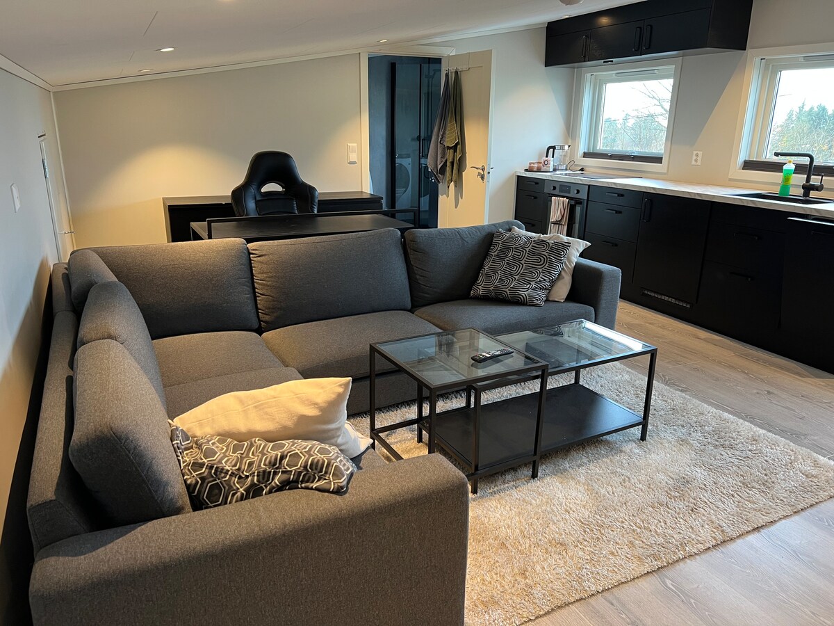 Apartemen Besar 74 m2 dengan 2 kamar tidur. Apartemen ini terletak di Hallaråker di lingkungan yang damai. Terletak tidak terganggu, dengan jarak pendek ke laut, hutan dan jalur hiking, hanya 8 menit ke pusat kota Svortland. Parkir pribadi ke apartemen. Apartemen ini terdiri dari: 2 kamar tidur, kamar mandi dengan kabin pancuran, dapur, ruang tamu dan satu gym. Apartemen ini memiliki internet, saluran TV Altibox dengan berbagai saluran streaming.