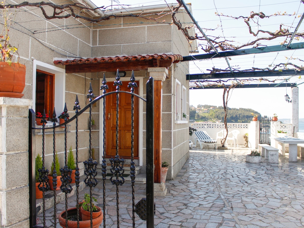 Villa Balbina. Rumah dari tahun 70 - an, direnovasi sepenuhnya pada tahun 2020, berlokasi di sebelah Pantai Beluso, Pantai A Roiba, dan marina. Jika yang Anda cari adalah tempat yang nyaman, tenang, dan berdekorasi pesisir dengan pemandangan laut yang menakjubkan, tempat ini cocok untuk Anda! Rumah ini cocok untuk empat orang karena memiliki dua kamar tidur, satu dengan tempat tidur double dan satu lagi dengan dua tempat tidur twin. Termasuk Wi - Fi.