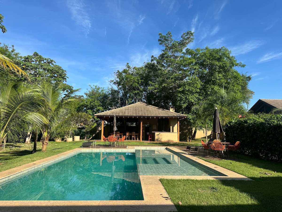 Casa de veraneio ideal para quem busca uma estadia tranquila e confortável. Nosso espaço oferece 3 suítes, cada uma equipada com 1 cama de casal queen, 1 colchão de solteiro avulso e ar condicionado, 1 lavabo, cozinha gourmet totalmente equipada, 1 sala de TV e área de lazer privativa que dispõe de churrasqueira com 5 espetos, além de piscina com cascata e iluminação colorida. Localizada no bairro Tarumã Hypica Park, a 6 minutos de carro do vibrante centro de Bonito/MS.