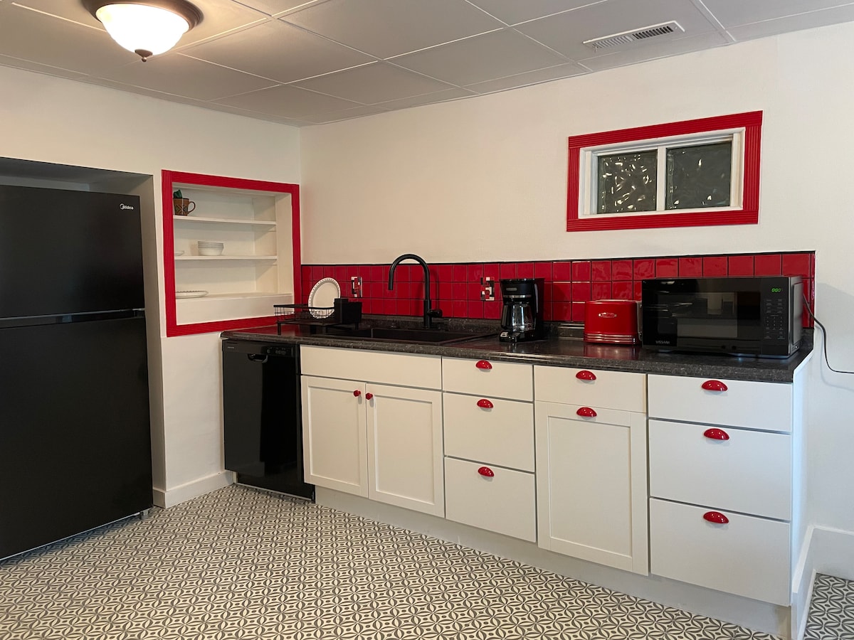 Kami memiliki apartemen ibu mertua yang menyenangkan yang cocok untuk keluarga, pelawat bisnis, akhir pekan anak perempuan, dan banyak lagi. Ruang ini mencakup dua kamar tidur besar (satu di lantai utama dan satu di lantai atas), ruang tamu, dapur kecil (tanpa oven/kompor) dan kamar mandi, dan dilengkapi perabotan lengkap. Kami ramah hewan peliharaan, tetapi mengenakan biaya tambahan $50 untuk biaya reservasimu. Harap beri tahu kami bila Anda berencana membawa hewan peliharaan.