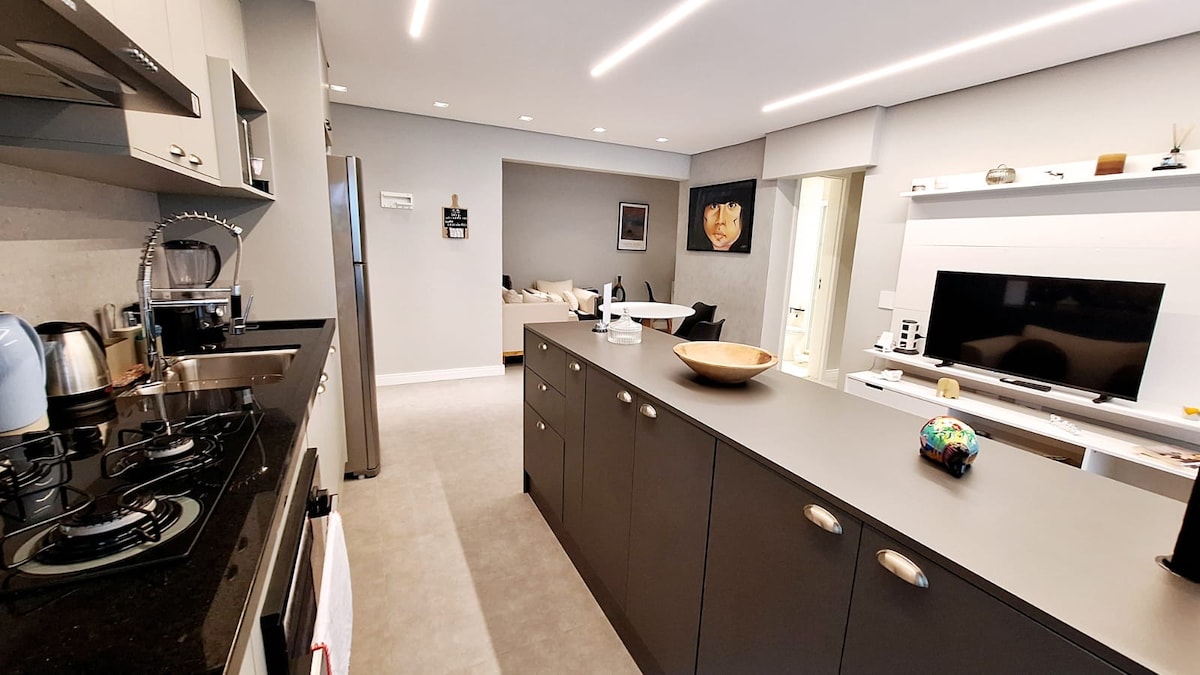 Foot in the sand Unlimited Ocen Front. Bagi mereka yang mencari kenyamanan dan penyempurnaan. Untuk bekerja atau berjalan kaki, di lokasi terbaik Santos menghadap pantai. - Kamar tidur dan kamar mandi - Full kennel dan banyak kenyamanan - Parkir gratis, di dalam gedung PERHATIAN: - Chekin pukul 15.00 dan Check out pukul 12 siang. Kami tidak memberikan fleksibilitas karena membahayakan kebersihan dan akomodasi lainnya. - Jika Anda memiliki ketersediaan, Anda bisa memesan. Harap jangan tanyakan apakah Anda memiliki ketersediaan pada tanggal yang tidak tersedia.