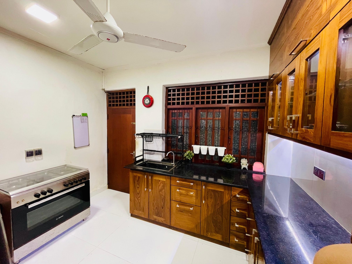 Bersantai bersama seluruh keluarga di rumah kami yang tenang, baru-baru ini direnovasi oleh pemiliknya - seorang Arsitek - rumah 3 kamar tidur (satu kamar dengan tempat tidur bertingkat -3 tempat tidur single yang terhubung). Sangat cocok untuk keluarga, termasuk AC (hanya untuk kamar tidur), kipas angin langit-langit, dapur lengkap, dan laundry. Terletak di lingkungan yang aman, hanya berjalan kaki sebentar ke kota Nugegoda, jalan utama, dan transportasi umum, dan sangat dekat dengan semua fasilitas lainnya, supermarket, bank, fasilitas rekreasi, restoran dan pub, dll.
