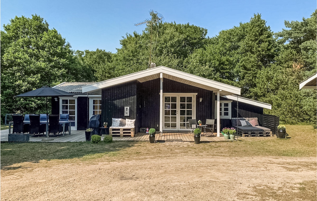 Pondok yang indah di dekat pantai Dueodde. Pondok mewah ini berisi semua fasilitas termasuk ruang tamu cerah yang bagus dengan furnitur berkualitas, dapur dan ruang makan terbuka serta tiga kamar tidur dan loteng. Akhirnya Anda akan menemukan kamar mandi yang indah dengan sauna dan spa yang bagus dan pemandangan hutan. Pada tahun 2022, sebuah patio kayu baru dibangun dan sebuah trampolina disiapkan untuk anak - anak Listrik selama menginap akan dibebankan biaya 4 kr per Kwh, sedangkan konsumsi air sudah termasuk
