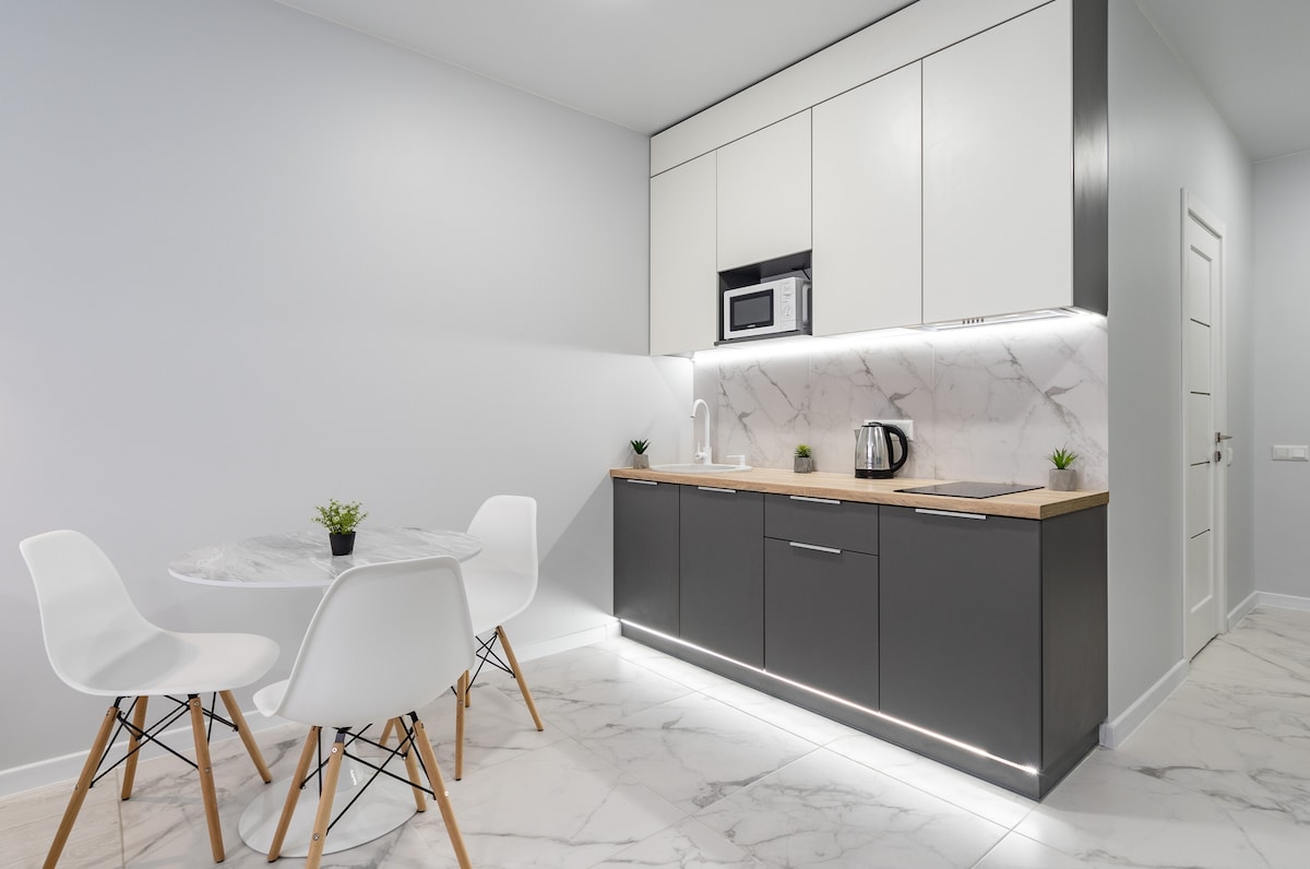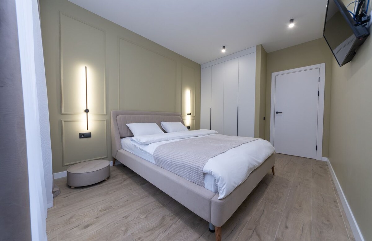 Apartemen yang bergaya dan nyaman dengan desain minimalis modern dibuat untuk masa inap yang nyaman. Aksen kayu hangat yang dipadukan dengan detail hitam dan pencahayaan lembut menciptakan suasana relaksasi yang ingin Anda tempati. Secara terpisah, sistem ventilasi individu disediakan untuk udara segar dan kenyamanan maksimal. Sistem rumah pintar juga disiapkan. Ada tempat tidur double yang nyaman, dapur modern, dan kamar mandi dengan pancuran tropis - segala sesuatunya untuk merasa seperti di rumah.