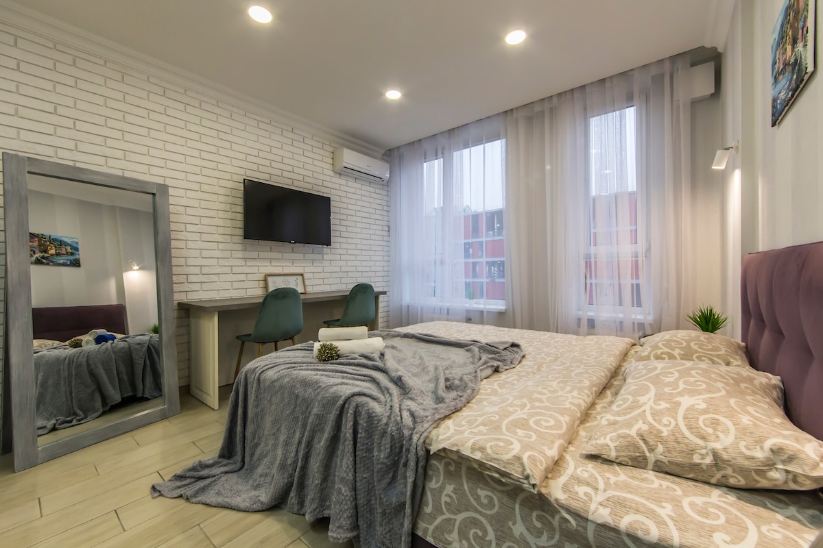 Halo! Nama saya Julia dan saya sangat senang menyambut Anda di apartemen desainer baru saya (32 meter persegi) di Kiev. Saya senang berbagi dengan Anda apartemen kontemporer bergaya ini menampilkan tata letak konsep terbuka, permukaan kayu, dan dekorasi berselera tinggi. Di sini Anda bisa menemukan semua yang mungkin Anda butuhkan untuk masa inap Anda - seprai berkualitas tinggi, pengering rambut, setrika, aksesori kamar mandi, dan banyak lagi. Jangan ragu untuk memulai hari Anda dengan secangkir kopi atau teh pilihan Anda sebagai pujian untuk masa inap Anda. Selamat datang!