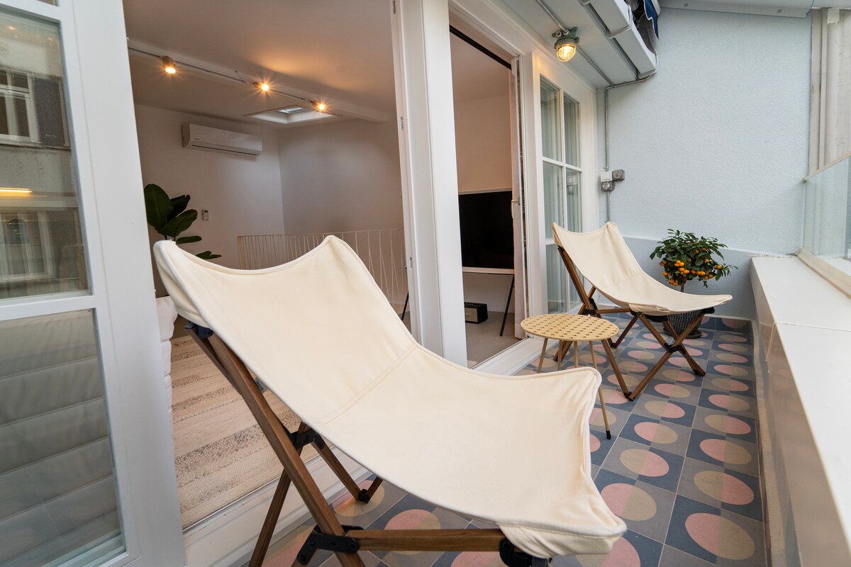 1BR kontemporer dengan balkon di Galata (A20)
