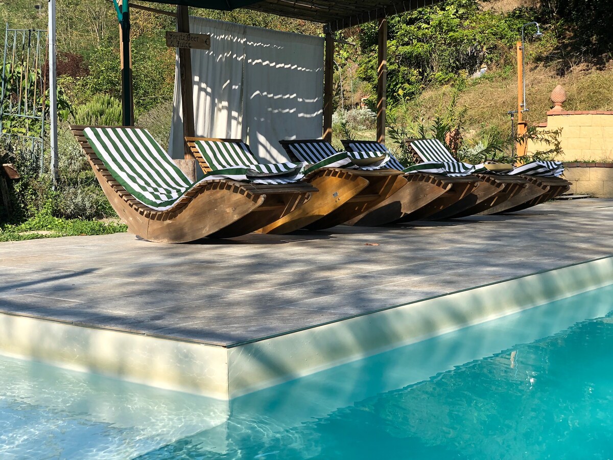 Wilayah piemont adalah salah satu rahasia Italia yang indah. Terkenal dengan anggur, truffle, dan kuliner dan lanskapnya, rumah kami berada tepat di tengah - tengah kebun anggur warisan UNESCO yang paling terkenal di LA MAGGIORA Road, salah satu jalan paling indah. Apartemen LOFT yang baru direnovasi dengan pintu masuk independen, teras yang luas, ruang tamu yang besar, dapur yang lengkap, kamar tidur dan kamar mandi serta kolam renang air asin kami. Dapat menampung hingga 5 orang. Pengisi daya untuk mobil listrik dari pukul 11.00 hingga 17.00.