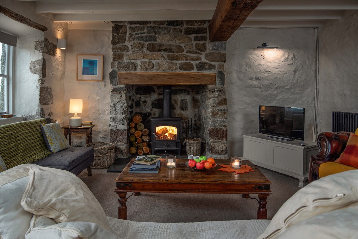 Tamu mengatakan bahwa pengalaman ini luar biasa di setiap musim. Benar - benar melarikan diri di pondok batu tradisional tepi laut terpencil yang ramah anjing ini untuk 6 orang, lahan aman seluas satu hektar dengan pemandangan laut panorama, matahari terbit, bintang, dan bulan di atas air. Di teras, menatap Hell's Mouth Bay, bersantai di alam, menikmati pemandangan menakjubkan dengan privasi total. Nikmati iklim mikro, udara laut segar, satwa liar, dan berjalan kaki dari pintu depan. Wi - fi, Netflix, DVD, woodburner, dan sofa slouchy untuk relaksasi dingin.