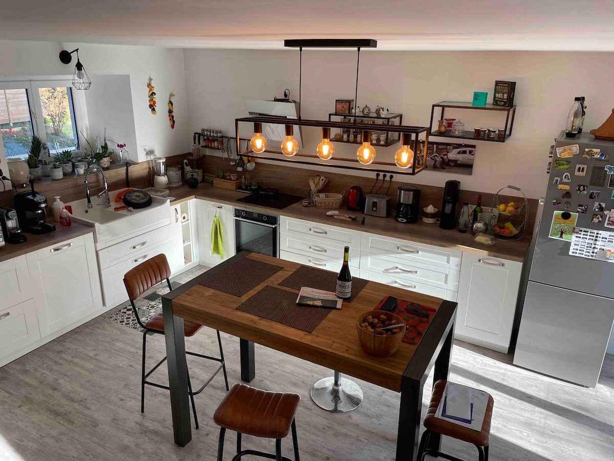 Rumah tahun 2002 di komplek perumahan yang tenang, ideal untuk keluarga, sekelompok teman yang terdiri dari 8 orang dewasa. Penginapan yang menenangkan untuk seluruh keluarga. Beranda yang luas, area luar ruangan yang tertutup sepenuhnya. Bisa menyediakan tempat tidur bayi untuk anak-anak. 30 menit dari pantai pendaratan, hutan Grimbosq, Normandy Swiss, memorial Caen, Bayeux....