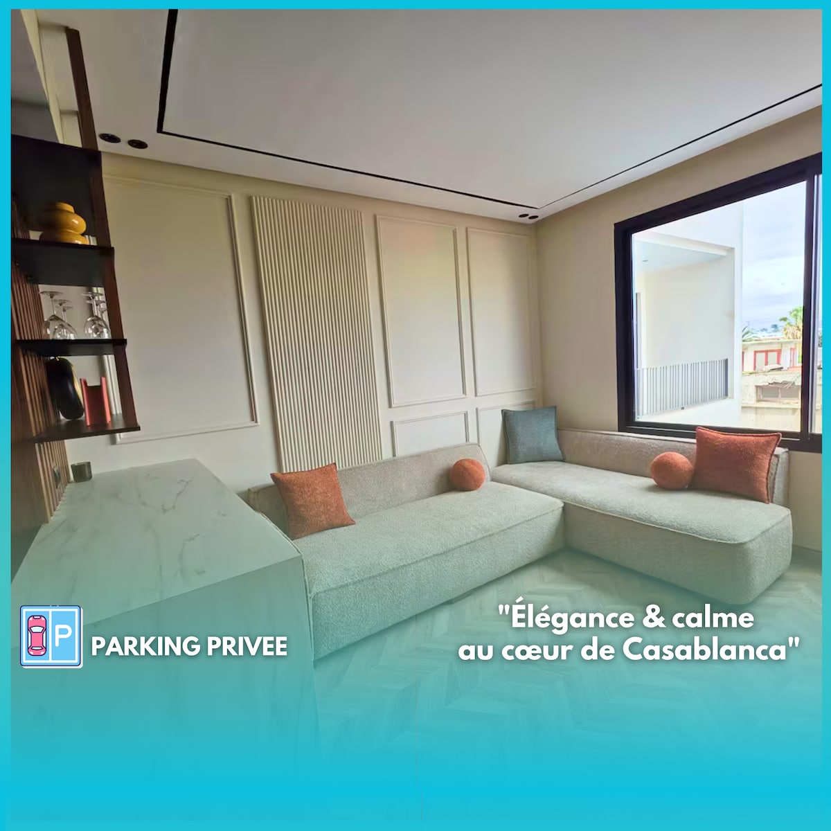 Selamat datang di rumah, flat yang indah dan nyaman di Bliving, ideal untuk masa inap singkat untuk menjelajahi kota bersejarah Casablanca Old Medina, Marina, pusat perbelanjaan, la corniche, dan beberapa tempat wisata di dekatnya dalam jarak berjalan kaki beberapa menit. Terletak di segitiga hotel, bangunan ini dikelilingi oleh hotel mewah seperti Sofitel, Novotel, Marriot, Royal Mansour dan Ibis. Koneksi langsung ke bandara dengan kereta api, dan ke kota - kota Maroko lainnya di dekat stasiun kereta Casaport yang menghadap ke rumah.