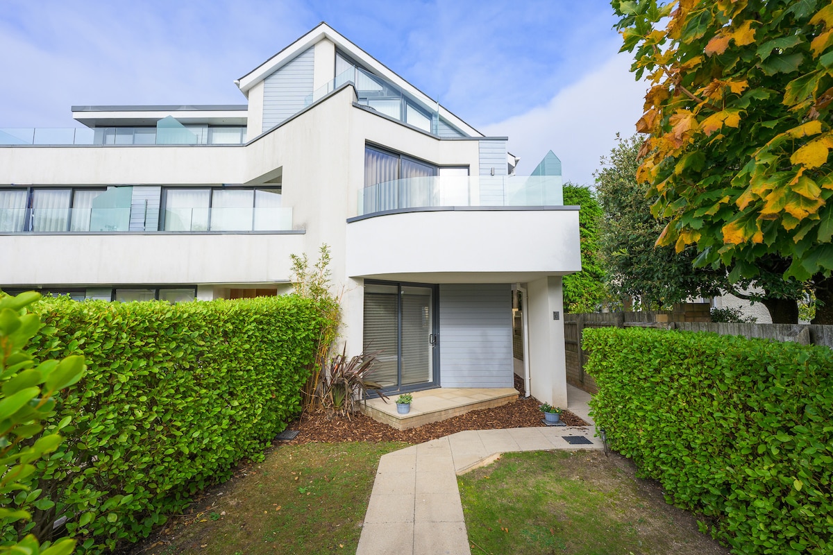 Properti kontemporer yang luas di Poole Dorset ini memiliki semua yang dibutuhkan keluarga dan teman - teman Anda untuk menginap dengan sangat nyaman,cukup untuk tidur 12 orang, lokasi yang luar biasa untuk kota dan melihat pemandangan, pantai dan taman di seberang jalan, lebih dari 200 ulasan 5 Bintang. EV Charger dibayarkan secara terpisah 0,70 per Kw. Termasuk kayak dan sepeda. Bak Mandi Air Panas dan Sauna Opsional, harga atas permintaan. Jelas bukan rumah pesta, Kebijakan tenang yang ketat setelah pukul 22.00, hanya keluarga yang diizinkan.